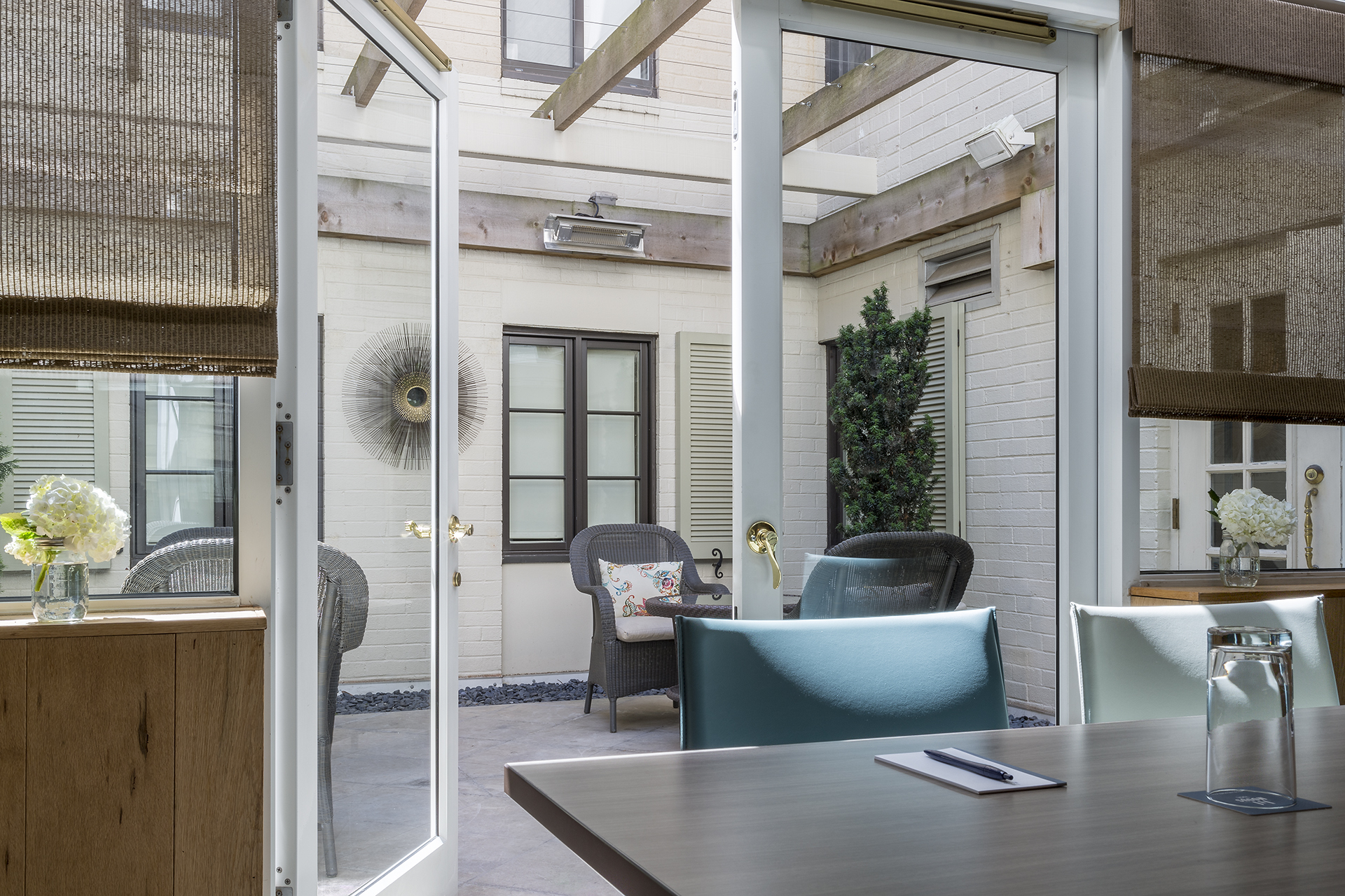 Two charming meeting rooms and a breezy outdoor patio combine for more than 900 square feet of event space. Network – or decompress – in the Library, meet for a morning coffee in the light-filled and whimsical Garden Room, or gather outside with up to 30 guests.